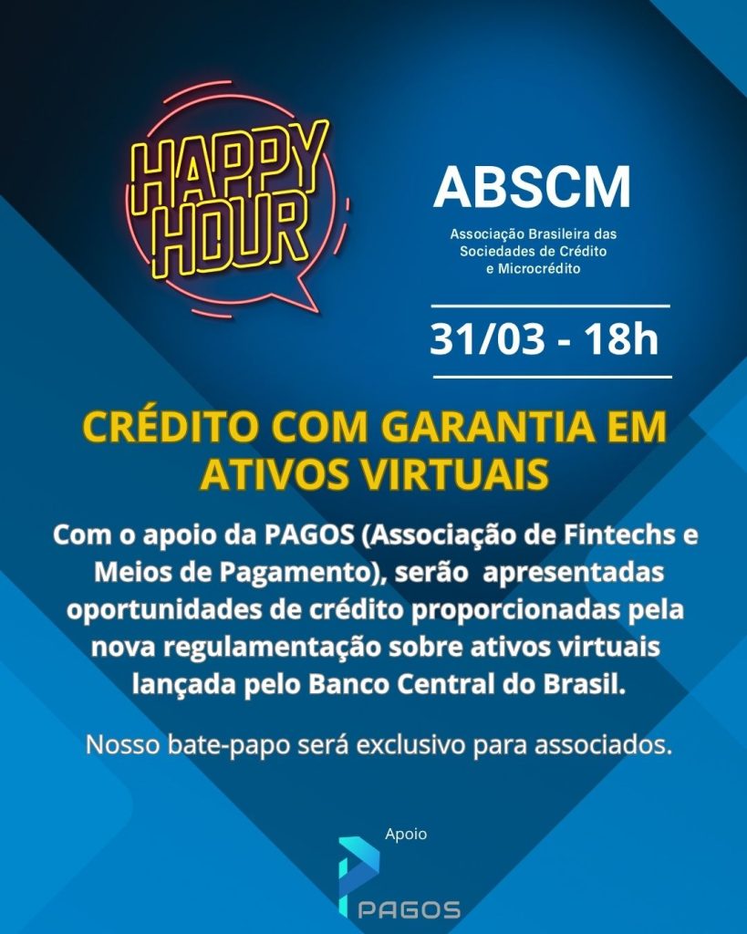 Com o apoio e participação da PAGOS | Associação Brasileira do Ecossistema de Pagamentos, serão apresentadas oportunidades de crédito proporcionadas pela nova regulamentação sobre ativos virtuais lançada pelo Banco Central do Brasil.